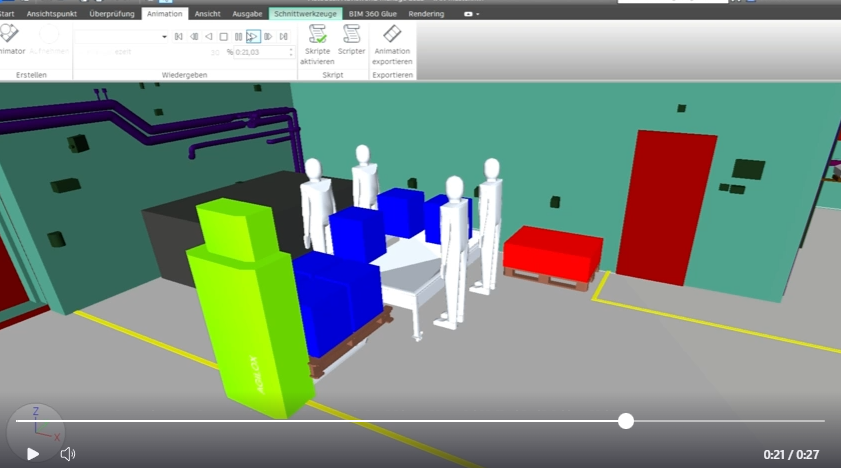 Visualisierung der Anlage und deren Design zu bestimmen und optimieren, bevor die Ausführung beginnt. Sie ermöglicht eine realistische Darstellung der Anordnung von Geräten, Rohrleitungen und anderen Komponenten, um Kollisionen zu vermeiden und den Bauablauf effizient zu gestalten.