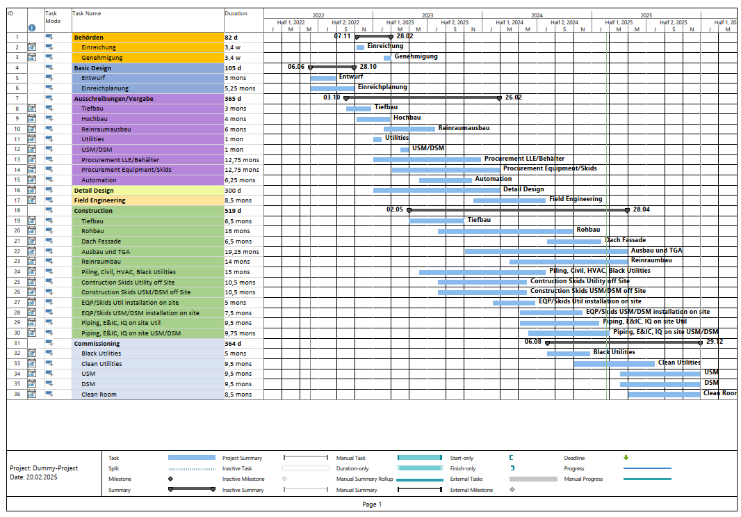 Planung, Koordination und Überwachung aller Phasen eines Projekts, von der Konzeptentwicklung über die Beschaffung und Konstruktion bis hin zur Inbetriebnahme der Anlage. Dabei liegt der Fokus auf der Einhaltung von regulatorischen Vorgaben, Qualitätsstandards und Terminen unter Beobachtung der laufenden Projektkosten.